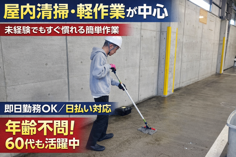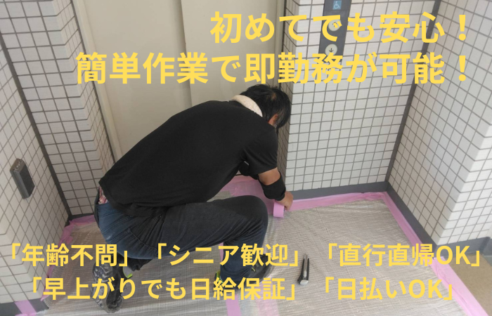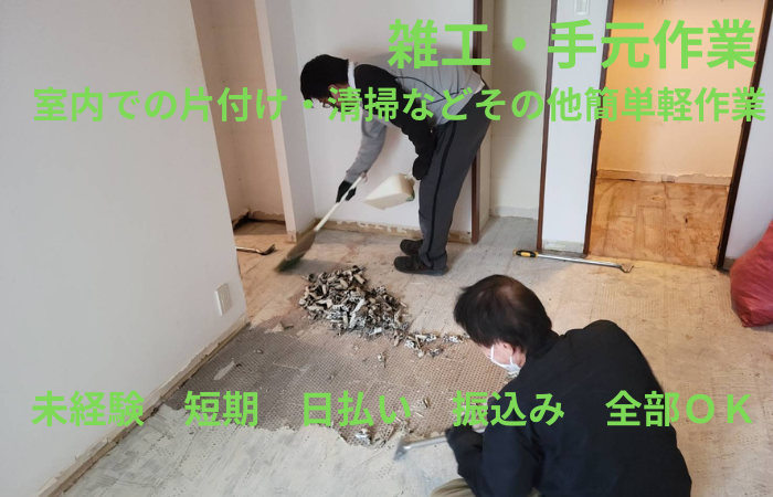 仕事内容 未経験OK!初期費用0円で即勤務可能! 週1日から勤務OK!ライフスタイルに合わせて無理なく働けます 65歳以上のシニア世代の方でも、毎日勤務出来る体に負担の少ない作業になります。 「今すぐ働きたい」「安定して稼ぎたい」 そんなあなたにピッタリの仕事です! 未経験から始められる 建設現場のカンタンなサポート業務。 仕事量は常に安定しているので 長期で安定して働きたい方におすすめ! ✨合言葉は『誰でもできる!』✨ 日払いOK/現場多数/シンプル作業 応募したら最短翌日スタート! こんな方は迷わず応募! ・安定した収入が欲しい ・長期で落ち着いて働きたい ・現場経験を活かしたい ・未経験でもしっかり稼ぎたい ・規則正しい生活リズムで働きたい 1つでも当てはまればOK! 応募しないと損!5つの安心ポイント 【① 即現金GET】 働いたその日にお給料支給! 銀行振込も対応OK! 【② 未経験スタート7割以上】 先輩の多くが営業・事務・飲食・販売・工場など異業種出身! 【③ 超シンプル作業】 力仕事は少なめ! 片付け・補助作業が中心で安心! 【④ 仕事が途切れない】 現場増加中につき安定収入! 週1日~でもしっかり稼げます! 【⑤ 手ぶらでOK】 ヘルメット・道具類は無料貸出! 準備ゼロでスタート可能! 仕事内容(選べる現場) 単発1日の現場から固定で毎日入れる現場まで様々あります。 <倉庫・工場内作業> 屋内の産業廃棄物置き場にて、清掃、分別・積み込み作業をお願いします。 【具体的には】 木材・金属・プラスチックなどの分別作業 コンテナ・トラックへの積み込み補助 作業場内の整理・床の清掃(モップ掛け) ※未経験OK・長期勤務出来る方歓迎! <勤務地> 大田区平和島、板橋区、足立区など ※置き場内に清潔な休憩所・トイレあり。休憩時間も安心して過ごせます。 <建築現場作業> ・内装解体後の廃材の搬出 ・現場内の片付け・清掃 ・引渡し前の室内クリーニング ・材料準備・道具の手渡し ・リサイクル工場での分別作業(軽作業) ・養生作業(床や壁などを傷や汚れから守るためにシートやテープで保護する) ※技術不要!誰でもすぐ覚えられます! <設備・空調関連作業> 新築・リフォーム現場でのキッチン、照明器具の交換作業 ・資材運搬 ・梱包バラシ ・ゴミの分別、搬出 ・設置補助 ※1日1現場のみ! 作業が終わればその日は終了! <造園作業> マンション・公園・団地内での作業 ・草や枝の片付け・清掃 ・植木や芝生の運搬・植え付け補助 ・水やり・後片付け ・防草シート貼り 未経験・学生・シニア・女性・ブランクOK! ・久しぶりに働きたい ・アルバイトが初めて ・体力に自信がない 全部問題ありません! <勤務地> 神奈川県内・横浜市内・川崎市内中心に多数! -最近の現場最寄り駅一例- ■小田急線 町田駅・新百合ヶ丘駅・海老名駅・本厚木・中央林間駅・登戸駅・成城学園前・梅が丘・新宿ほか ■ JR線 川崎駅・横浜駅・武蔵小杉駅・新横浜駅・桜木町駅・町田駅・相模原駅・橋本駅ほか ■ 東急線 こどもの国・長津田・青葉台・鷺沼・溝の口・ ■相鉄線 海老名駅・大和駅・希望ヶ丘駅・湘南台駅・西谷駅・平沼橋駅ほか 直行直帰OK/全現場駅チカ/通勤時間考慮! <勤務時間> ・8:00~17:00 ・9:00~18:00 ※実働6~7時間 ※作業が終わり次第【早上がりOK!】 <日給> 10,500円~14,500円 <月収例> ・週5日勤務の場合 日給10,500円 × 月22日勤務 = 月収231,000円以上可能+各種手当 ・月10日間勤務の場合(Wワーク・副業にも) 日給10,500円 × 月10日勤務 = 月収105,000円+各種手当 ※各種手当が付いてさらに月収アップも可能! ※日払いOK/働いた分はすぐに受け取れます! ※早上がりでも日給保証あり(現場による) <休日・シフト> ・シフト自己申告制 ・副業・Wワーク歓迎! ・週1日~OK ・週5日レギュラー歓迎 希望休100%考慮 <給与・待遇> ・日払いOK(その日が給料日) ・振込対応OK ・交通費支給(規定) ・各種手当あり ・年齢不問 ・作業用品無料貸出 ・髪型・髪色自由 ・ヒゲ・ピアスOK 【将来的に社員登用のチャンスあり】 まずは週2~3日からの勤務でお試しスタートもOK。 お仕事に慣れてきたら、正社員への切り替えや月払いへの変更も可能です。 自分のペースで働き方を選べます。 未経験歓迎!10名以上の大量採用! ・年齢・経験不問 ・ミドル・シニアも在籍 ・友達同士の応募OK ✨登戸営業所でも同時募集中✨ 川崎市多摩区登戸3370-3-1F 小田急線・JR南武線「登戸駅」 徒歩2分! 応募から勤務まで超カンタン! ①【応募】まずは気軽に! ②【面接】履歴書不要!相談だけでもOK ③【勤務】最短翌日スタート! ここまで読んだあなた! あとは応募ボタンを押すだけ! 履歴書なし・即勤務OK! まずはお気軽にご応募ください!