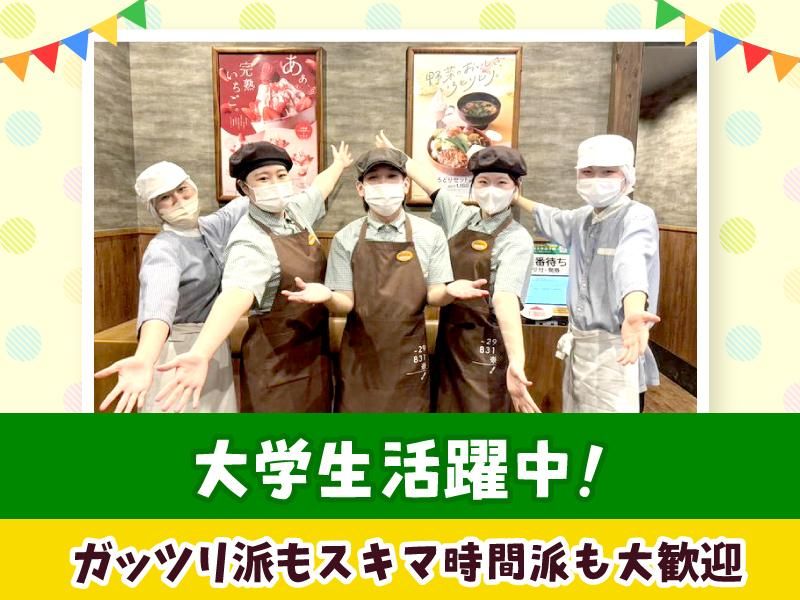 求めている人材 <学生さん活躍中のアルバイト> 10~20代の一緒に働く仲間たくさん! ◆平日と土日祝どちらも入れる方、大歓迎! ◆未経験OK ◆大学生活躍中! ◆カムバック・ブランク応募も歓迎! < 女性活躍中です!! > 10代・20代が多数活躍中! 誰とでも気軽に話せるようなアットホームな職場です! _/_/_/_/_/_/_/_/_/_/_/_/_/_/_/_/_/_/ <スタッフの声> ・現在、平日・土日祝かかわらず 授業のない夜の時間帯にしぼってアルバイトをしています。 土日は時給UPなので収入面でも助かっています! 注文はタッチパネル式なので、接客にも余裕が持てますよ!(20代) ‐‐‐‐‐‐‐‐‐‐‐‐‐‐‐‐‐‐‐‐‐‐‐‐‐‐‐‐‐‐‐‐‐‐‐‐‐‐‐‐‐‐‐ ・大学の授業が終わってからアルバイトをしています。 夕方から夜にかけてのシフトは、昼間の授業との両立がしやすいですし、 おいしいまかないもあり食費が浮いて助かっていることも!(20代) _/_/_/_/_/_/_/_/_/_/_/_/_/_/_/_/_/_/