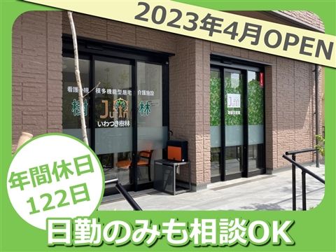 看護小規模多機能型居宅介護いわつき樹林 求人概要 看護小規模多機能型居宅介護いわつき樹林:看護師/正職員 日勤のみも相談OK◆車通勤OK&駐車場も完備★年間休日122日&残業少なめ◎2023年4月オープンのきれいな施設!【さいたま市岩槻区・岩槻駅・看護小規模多機能型居宅介護・看護師・正職員】 職種 看護師 所在地 〒339-0067 埼玉県さいたま市岩槻区西町3丁目2番24号 給与 月収30万円(月給26万円+夜勤手当4万円) 月収35万円(月給31万円+夜勤手当4万円) 上記は夜勤4回(1万円/回)の場合の月収例です。詳細は下記をご確認ください。 月給26万円~31万円+夜勤手当4万円(1回1万円×4回) ※月給に職務手当3万円、訪問看護手当2万円を含みます ※経験・能力により異なります ※別途、入職3ヶ月後より処遇改善手当5000円~1万円/月を支給 求人詳細 日勤のみも相談OK◆車通勤OK&駐車場も完備★年間休日122日&残業少なめ◎2023年4月オープンのきれいな施設!【さいたま市岩槻区・岩槻駅・看護小規模多機能型居宅介護・看護師・正職員】 年間休日122日&残業少なめなので自分の時間を確保しやすい環境になっています★「岩槻駅」から徒歩圏内、車通勤も可能な施設でお仕事しませんか? 職種 看護師 仕事内容・PR ▼△▼ 正職員/看護師を募集中 ▼△▼ いわつき樹林の登録定員は29名です。 泊りは9名/日、通いは18名/日定員となっております! ▼△▼ 仕事内容 ▼△▼ 看護小規模多機能型居宅介護施設にて看護業務をお願いいたします。 *施設内・・・通い・泊りの利用者様の健康チェックなどの看護業務、食事・入浴介助 *訪問看護(訪問は法人車両を使用します) *オンコール対応 *転倒予防、リハビリ体操等の健康サポート *営業活動(ケアマネジャーへの情報提供など) *その他関連業務(施設内でのレクリエーションなど) ▼△▼ 看護小規模多機能型居宅介護(看多機)とは・・・? ▼△▼ 住み慣れた自宅での生活を支えるために介護保険サービスの「通い」を中心に「訪問介護」「訪問看護」「泊まり」を1つの事業所で提供させていただきます。 雇い入れ後の業務内容の変更の範囲および就業場所の変更範囲の詳細は面談時にお伝えします。 雇用形態 正職員 契約期間 雇用期間の定めなし