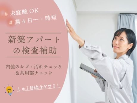 仕事内容 ●仕事内容● \未経験歓迎!/ 新築アパートの内装チェック&検査補助のお仕事! ▼入居前のお部屋の中のチェック(約10件/月) L壁・床の傷や汚れ、ドアや収納棚の動作確認など ▼引き渡し3ヶ月後のチェック(約10件/月) Lチェックリストにそって共用部の点検 ※建物玄関、廊下、階段、ポストなど 個別のお部屋には立ち入りません ▼チェック結果の入力、報告書の作成(iPad) ◎検査予定のないときはオフィスで事務サポート L入力、ファイリングなど ◎ゆくゆく上記以外の工程検査もお願いしていきます L基礎、躯体、木工検査など(習熟度に応じて) ※いずれも図面やチェックリストを見てチェックする作業 ★慣れたら直行・直帰もOK! *外出は1日1~2件程度 *担当エリアは東京西エリア(三鷹・立川・八王子等) *作業服/iPad貸与 *移動は基本、公共交通機関を利用 希望があれば社用車の使用も可 【派遣先】旭化成グループハウスメーカー 【期間】即日~長期 ~~お仕事決定までの流れ(目安)~~ 派遣登録(WEB面談)→社内選考(3日程度)→職場見学→お仕事決定! ●アピールポイント● ▼2名募集!一緒にスタートする仲間がいるので安心感あり ▼週4~5日/時短勤務も可能なのでライフスタイルに合わせてお仕事できます ▼未経験OK!住宅やインテリアを見るのが好き、または興味のある方! ●勤務地・環境● 【旭化成グループ/禁煙方針】 休憩時間・就業前・終業後含め職場・ビル内での喫煙は全面禁止 - 人材派遣事業(許可NO:派13-010152) 有料職業紹介(許可NO:13-ュ-010210)、紹介予定派遣事業 ●その他● 【会社名】旭化成アミダス株式会社 https://www.amidas.co.jp/ 住所:東京都千代田区神田錦町3-22 テラススクエア5階 【求人窓口】東京第二支店 TEL:0120-370-325 【派遣登録について】 zoomを使用したオンラインにて実施しています ■開催曜日:月~金(平日) ■開催時間:10:00~/11:00~/13:30~/14:30~/15:30~/16:30~/17:30~ (所要時間は30~40分) ■内 容:登録面談(経歴確認や就業希望条件等のヒアリング)/適性検査