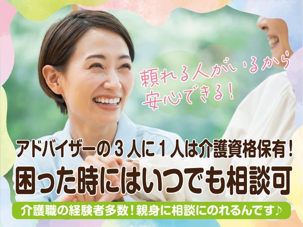 応募資格 介護福祉士 \こんな方にもオススメ/ 福祉業界で社会貢献がしたい方 訪問介護・訪問入浴経験者 身体介護・生活援助・ケアワーカー経験者 家事スキルを活かしたい方 総合病院やクリニックなどの医療施設での勤務経験者 Uターン・Iターン希望の方 子育て卒業により社会復帰・職場復帰をお考えの方 ママさんスタッフ・パパさんスタッフが働いている職場をお探しの方 資格取得をしてスキルアップ・キャリアアップしたい方 産休・育休制度などが整っている職場で働きたい方 \以下での勤務経験者は優遇いたします/ デイサービス グループホーム サービス付高齢者住宅 住宅型有料老人ホーム 特別養護老人ホーム 介護老人保健施設 介護付有料老人ホーム 30代、40代、50代の幅広い年齢層が活躍中!