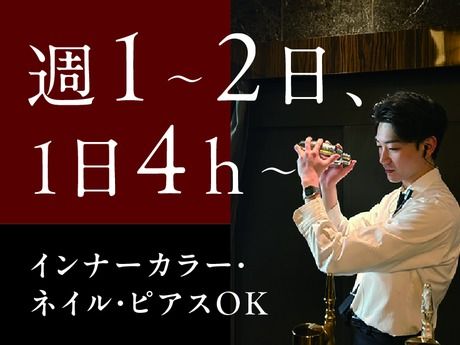 資格 □学歴不問 □資格不問 □飲食未経験さん大歓迎! ★★★こんな方を歓迎します★★★ *自分のスキルを活かしたい方 *大人な雰囲気のお店が好きな方 *プロ・アマを目指している方 *人に喜んでもらいたい方 *Wワーカー、フリーターさん *フルタイムで入りたい方 *メインのバイトを探している方 *かけもちしたい方 *ラストまで入ってガッツリ稼ぎたい方 年齢の条件と理由:20歳以上(健康増進法により20歳未満立入禁止のため)
