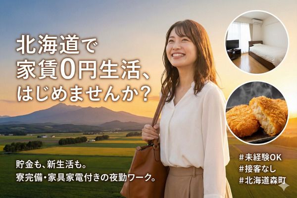 ✅勤務時間15:45~24:00(実働7時間15分)✅休日:日曜・祝日(その他シフト制)◆日をまたがない夜勤◆家具家電付き寮費無料♪