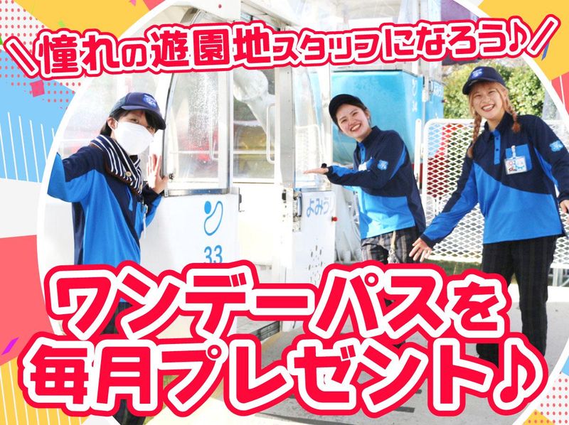 求めている人材 <必須条件> 土日祝日を含む週2日以上勤務できる方 繁忙期に勤務が可能な方 屋外で体を動かす勤務が可能な方 ※寒さや雨などの天候面や虫などに ある程度ご理解ある方 <こんな方、歓迎します!> 大学生、短期大学生、専門学校生の方 フリーターさんや 「遊園地で働いたことがない…」といった 未経験の方も歓迎します!