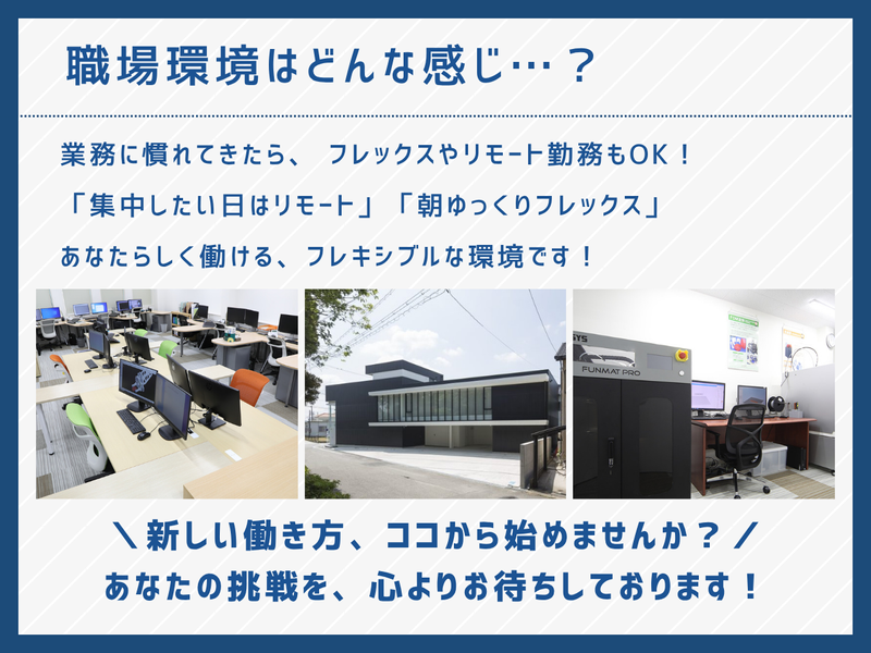 求めている人材 \未経験OK!/ 【必須条件】 高等専門学校または大学卒業以上 【歓迎する人材】 ✅ 未経験OK・経験者歓迎! ✅ Uターン・Iターン大歓迎! ✅ ものづくりに興味がある方 ✅ 機械設計エンジニアとして手に職をつけたい方 ✅ チームで協力して働きたい方 ✅ 愛知県に根差して働きたい方 【こんな業界・職種からも活躍中!】 製造業/自動車ディーラーの販売職 ウォーターサーバーの営業 サービス業・接客業 高校教師 飲料機メーカー営業/公務員 【スタッフの声】 ■未経験からスキルを習得!✨ (Mさん・30代男性・9年目) 前職は製造ラインのサブリーダー。 未経験OKの当社に転職し、 今では設計に関わっています。 日々成長を感じられ、 有休も取りやすく仲間と 相談しやすい雰囲気も魅力です。 ■文系・未経験から技術職へ! (Fさん・30代男性・6年目) 営業職から手に職をつけたいと思い転職。 文系でも成長できる環境で、 現在は設備設計を担当しています。 在宅勤務やフレックス制で プライベートとの両立も◎ このように、未経験で入社した 20代の若手から、30代以上の方も しっかりと活躍中です! 性別不問・経験は問いません。 興味があればぜひご応募ください!
