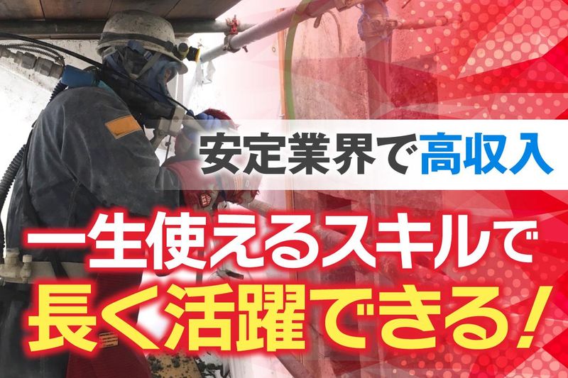 仕事内容 ◆ 全国の現場をまわりながら、 しっかり稼げる仕事です お任せするのは、 道路・橋・工場などの設備を 高圧の水で洗浄、斫り業務などを含む、 メンテナンス作業が中心です。 ▼ 具体的にはこんな作業です *高圧洗浄機を使用し、 壁・床・配管などの洗浄、斫りを中心とした 一連のメンテナンス業務 *使用する機械の準備や片付け *現場での安全確認・チーム内での連携 3~4人のチームで現場に入り、 機械を操作しながら コンクリートや金属の汚れ、 古い塗装などを洗浄機で削り落とします。 道具の名前や使い方は 入社後にイチから教えるので、 特別な知識や経験は必要ありません! ◆入社後のサポートも充実しています! 先輩スタッフとの同行で、 工具の扱い方や作業手順から 丁寧にレクチャー! 最初はオペレーターや 監視などの業務からスタートし、 少しずつ技術を習得して頂きます。 徐々にお任せしますので、 未経験の方でもご安心ください。 ゆくゆくは、「高圧洗浄士」などの 専門資格取得も費用会社負担で 目指すことが可能です。 技術が身につけば、 収入アップ・昇格も叶いますよ! ◆出張中の宿泊先は“完全個室”で快適! 費用は会社が全額負担します◎ ✅宿泊先は必ず一人部屋 (ビジネスホテル等)を確保 ✅宿泊費・食費・交通費はすべて会社負担 ✅現場が休みの日は、 観光やご当地グルメもOK! ▶ 実際に「プチ旅行みたいで楽しい」 と感じる社員も多数います。 ◆技術も収入も手に入る ✅未経験でも月給30万円スタート! ✅賞与や手当、昇給制度もあり ✅高圧洗浄士などの資格も 入社後に取得可能(会社が支援) 全国を飛び回りながら、 手に職も安定収入も手に入る。 「そろそろ腰を据えて働きたい」 「今の自分を変えたい」 そんな想いがある方にぴったりです。