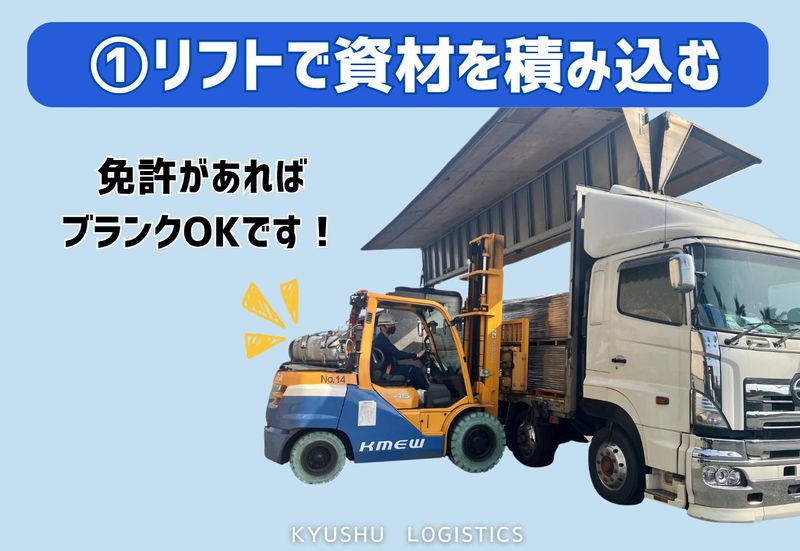 仕事内容 ◇================◇ <リフト・大型免許必須!経験活かせます♪> 構内での運転だけなので安全・安心◎ 30~40代男性中心に活躍中! ◇================◇ 外壁資材を敷地内の別の場所に運ぶお仕事です。(横持ち) 10tトラックの運転&積み込み作業をお願いします。 フォークリフトで資材をトラックに積み込み、 ゆっくりトラックで運び、指定の場所に降ろす作業! ※降ろす作業は他のスタッフがしたりもします 敷地内は速度制限20km/時なので、事故のリスクも少なく安心して運転していただけます✨ 運ぶ場所(倉庫)は数カ所のみなので、難しい作業はありません。 ⭐働きやすさのポイント⭐ 開始時間は朝6時代と早いですが、通勤ラッシュとは無縁! 帰りも15時台なので帰宅ラッシュにも合わずにスムーズに通うことができます。 (意外と重要なポイント✨) 工場カレンダーによってシフトは変動しますが(事前) 無理はシフトはなく、4勤2休、1勤1休…なんてこともあります。 逆に、今月は少し稼ぎたい!ということでシフトを増やす方もいたり。 シフトは相談もできるので予定がある場合などは相談ください✨ ⭐暑さ対策もばっちり⭐ 希望者には空調服を貸出し。 夏はスポーツドリンクの差し入れもしていて、無理せず水分補給の休憩も積極的に取っています。 少しでも体調が悪くなった場合はすぐに相談するように全スタッフにお願いしてます✨ 健康第一、安全第一を大切にしている職場です! ⭐経験活かせます♪ブランクOK⭐ 独り立ちするまで、入社後1ヶ月程度は先輩が横について作業を教えてくれますので、分からないことはすぐに質問できます。 職場では、"安全運転第一"を心がけており、焦らず、確実に技術を習得できる環境を整えています。 一人デビュー後も近くに先輩はいますので、フォローが必要な時はサポートします。 その他、社外講師を招いた「ものづくり研修」や、IT関連やQC検定についての資格取得補助があり、スキルアップのチャンスもあります。 希望があれば、将来的に他部署への異動やキャリアアップも可能!長~く腰を据えて働きたい方は必見です。 がんばった分評価され、年次関係なく早く昇進する若手も活躍中! 【九州物流株式会社について✨】 わたしたち九州物流株式会社は、住宅建材の製造加工を主軸に、 1982年の創立以来、高品質で信頼性のある製品の提供に努めております。 自社工場内で大手外壁材メーカーの純正品を加工・塗装、 メーカー工場内でラインやリフト作業、構内物流などをのお仕事を請け負っています。 また、福岡県北九州市のご当地ヒーローキタキュウマンのメインスポンサーなども行っています。