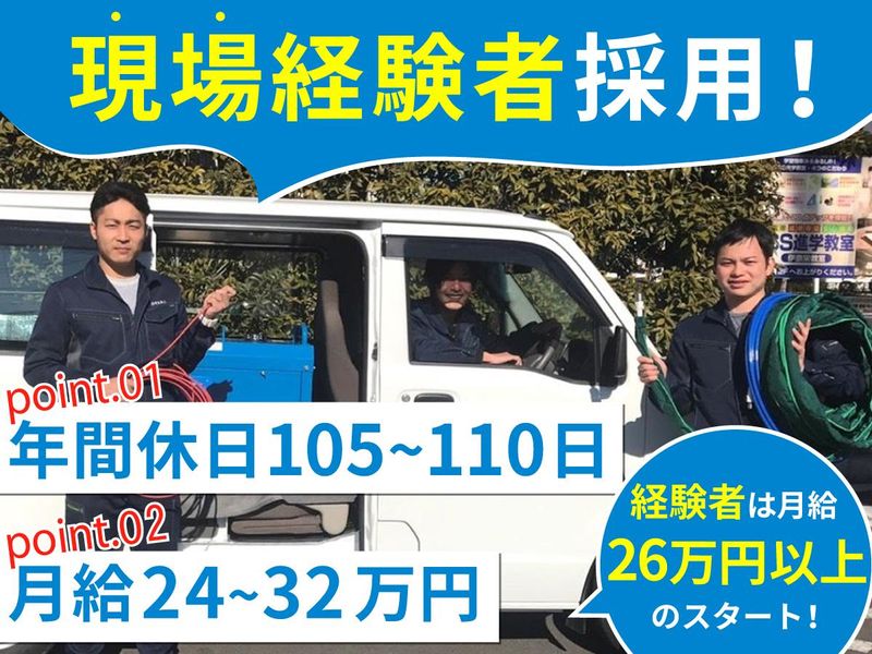 仕事内容 \プライベートと両立可能!/ ■働き方のポイント 所定労働時間は7時~16時 (現場により9時~18時の場合あり) 現場が早く終わることも多く、 自由な時間を確保しやすい環境です。 ■社用車で直行直帰OK! 朝は少し早いですが、帰宅も早く、 渋滞にも巻き込まれにくいので、 1日の時間を有効に使えます! ■年間休日105日~110日+長期休暇あり 土日祝休み(毎週日曜日+月2回土曜日)で プライベートを大切に働いてください! 夏季・年末年始休暇 有給休暇推進中! ■初年度から月収39万円も可能! 月給26万円〜32万円スタート+歩合あり 職人経験者は即戦力採用! ハウスクリーニング経験者や 大工・内装・設備・電気などの 工事経験者はしっかりと優遇します! ・賞与年3回 ・決算賞与(直近20年連続支給中!) ・歩合給(現場売上に応じて2~6万円/月) ■未経験でも安心スタート 研修や、資格取得支援など バックアップ制度も充実。 現場作業が初めての方でも問題ありません。 先輩スタッフのフォローがありますので、 少しずつ覚えていただければと思います。 ・設備の交換 ・簡単な大工仕事 ・内装工事 ・その他各種リフォーム工事作業 上記の作業を最初からできる 経験のある方には、スキル・実績に応じて 給与面でしっかりと還元します。 ―――――【具体的な仕事は】――――― 新築・中古・在宅の住宅を中心に、 以下のような現場作業をお任せします。 ・ハウスクリーニング (新築の引渡し前の清掃・在宅水回り清掃など) ・原状回復工事(内装、補修など) ・各種リフォーム工事 (大工・電気・水道・設備工事 ほか) ※経験・スキルに応じて業務をお任せします ※将来的には「多能工」として 幅広く対応できる職人を目指せます! ※当社の現場は多岐に渡るので 飽きがくることはありません。 ―社員4年目Aさんの1日の新築現場の勤務例― 5:30 起床 6:00 出発 7:00 現場着 7:30 近隣考慮の音の出ない作業開始 ➡養生をはがしたりなど 10:00 1回目の30分休憩 10:30 作業の続き、掃除機やガラス清掃等 12:00 お昼休憩 13:00 拭き上げ作業 15:00 後片付け 15:15 帰宅 16:30 家着!フリータイム ―――――【埼玉美工について】――――― ハウスクリーニングを中心とした 内装工事会社として、35年間、 黒字経営を続けています。 安定した基盤をベースに 多様な工事を請け負っており、 総勢60名を超えるメンバーが 埼玉、東京を中心に駆け回っています。
