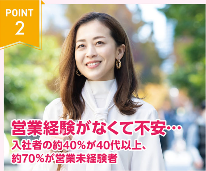 求めている人材 未経験者歓迎・ブランクOK・お仕事復帰応援 学歴不問 ◎営業経験は一切不要 女性活躍中 20代30代40代50代が幅広く活躍中 子育てママ・ワーママ在籍中(シングルマザーの方も多数!) 主婦・主夫活躍中 Uターン・Iターン歓迎 安定した環境で腰を据えて働きたい方 人と話すことが好きな方 年収400万円~500万円以上も目指せます ☆☆こんな方に選ばれています☆☆ 家庭と仕事を両立したい 人の役に立つ仕事がしたい 無理な営業はしたくない 将来の生活も安定させたい 正社員として長く働きたい