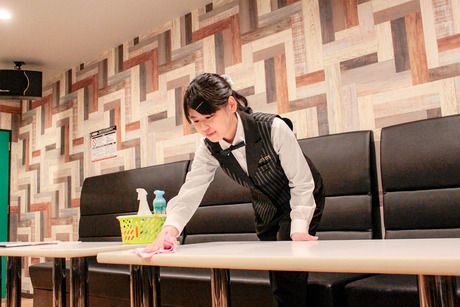 【保険制度】 雇用保険、労災保険、健康保険、厚生年金 待遇・福利厚生 【福利厚生】 ●スタッフ割引 └カラオケ:20%オフ └食事補助:50%オフ ●交通費規定支給 ●各種社会保険完備 ●正社員登用制度あり ●制服貸与 ●扶養内勤務OK ●車通勤OK ●研修あり