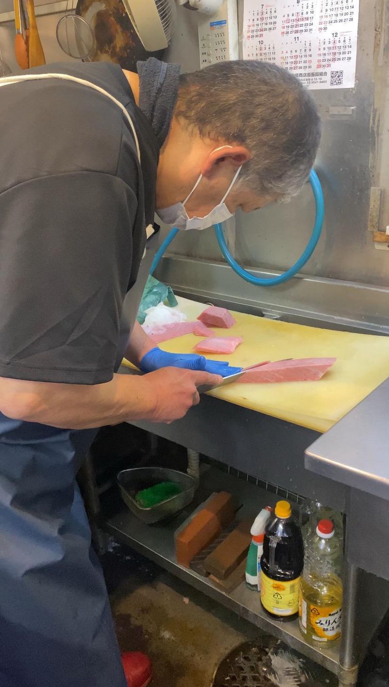 築地場外市場の海鮮丼屋でのホールスタッフ兼洗い場