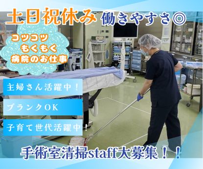 仕事内容 【お仕事内容】 ―――――――――――――――★。・ *土日祝休みでプライベート充実! *人気のコツコツ・もくもく作業! *フルタイムで安定収入が叶う! ・。★――――――――――――――― <手術室の清掃作業>――――――― 手術が終わったお部屋の ■床面のモップ掛け ■照明などよく触る部分の清拭 ■コード類の整理 などをお任せいたします! ――――――――――――――――― <おすすめPOINT★>――――――― ■サポート体制充実! 新入社員の方には、 ベテランスタッフが丁寧に指導いたします。 コツコツ・モクモク作業が好きな方に◎ ■退勤時間が遅い日も安心! 遅番勤務の際、 終電・終バスが間に合わない場合に タクシーチケットの支給あり! 安心して働ける環境を整えています! ――――――――――――――――― / お仕事紹介動画公開中☆彡 \ 下記URLから動画をご覧いただけます! ▼滅菌のオシゴト https://onl.sc/s5dZjNS 。*▼電話からの応募はこちらから▼*。 応募受付先:0134-54-0014(採用担当) 。*。*。*。*。*。*。*。*。*。 【働きやすさが魅力】 ―――――――――――――――★。・ 育児支援制度充実しています! ・。★――――――――――――――― *希望休の取得OK *家族行事などでの有給取得OK *高い有給休暇取得率 *お子様の発熱など急なお休みにも理解ある環境 【未経験・ブランクある方歓迎】 特別な経験や資格不要&しっかりとした研修もあるので、 未経験でも安心してスタートできます! 《こんな方にオススメ》 ・仕事を通じて社会貢献がしたい方 ・長期で安定して働きたい方 ・医療の現場で働いてみたい方 ・お掃除が好きな方 ・ハローワークで求職中の方も大歓迎 【ワタキューセイモアって?】 創業153年を迎えるリネンサプライ業シェア率トップクラス! 全国2万人以上の社員が活躍中です。 安定基盤の会社だからこその福利厚生・働き易さがあります! 【サービス・品質向上の取り組み】 弊社は、一般財団法人医療関連サービス振興会により 「寝具類洗濯」「院内清掃」「院内滅菌消毒」「院外滅菌消毒」において 医療関連サービスマークの認定を受けております。 良質な医療関連サービスとして”認定基準”を定め、 医療機関や国民の皆様に安心してご利用していただけます。 【旭川/中材】