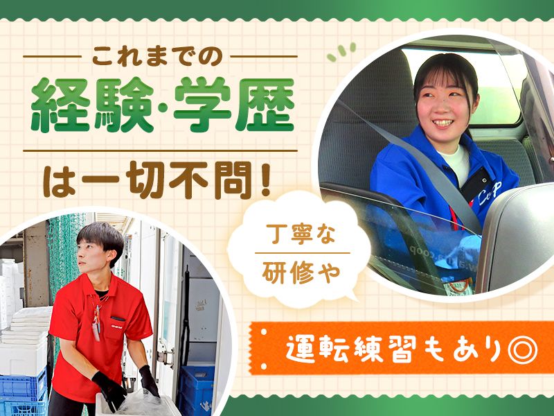 メッセージ 生協商品をお届けする ルート配送ドライバーを大募集中! ★土日休み+残業も月平均5時間程度と少な目 プライベートを大切にしながら 働くことができます◎ ★学歴・経験不問! 配送車は普通免許で運転可能です! ★若手だけでなく、中高年、 主婦(夫)の方も多数活躍中! 未経験から正社員への キャリアアップも目指せますよ◎ 安定して長く働けるCOOP(生協)職員になりませんか? 学歴・経験不問で正規職員も目指せる環境です◎ 供給事業 サービス事業 文化サービス活動