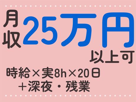 時給1,300円~1,625円 給与 時給 1300円~1625円 交通費:交通費支給 【給与例】 給与例 月収25万3500円+交通費 (内訳)時給1300円×実働8h×20日+深夜40h+残業20h