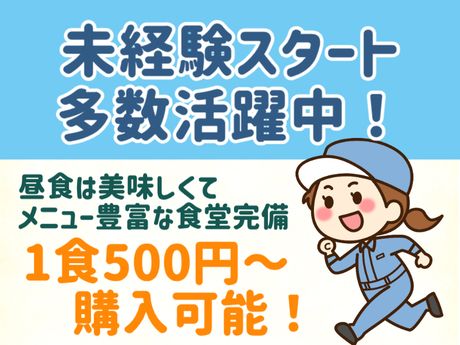 職場環境 【従業員構成】 大手企業で長く安定して働ける! 作業場は冷暖房完備の快適な環境です。 工場内の施設が充実しており、休憩時間は快適に過ごせる♪ 工場周辺は、様々な施設があり充実していて生活にも困りません! 【職場の雰囲気】 協調性がある 立ち仕事 アットホーム お客様との対話は少ない 初心者活躍中 知識、経験不要