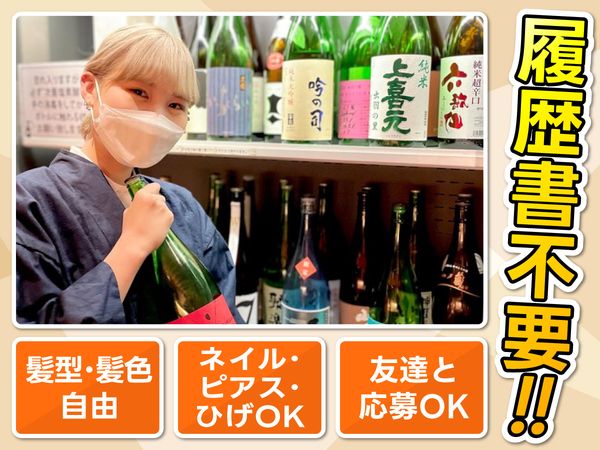 仕事内容 お客様のご案内・オーダー伺い・料理の提供・片付け・ドリンク作成・レジ業務などのホール業務全般をお任せいたします。 全部のメニューにマニュアルがあるので難しくありません! 笑顔で元気に接客ができればOK! ”ただ働く”だけでなく、接客業務を楽しんでくださいね〇 ❖**・・・**❖**・・・**❖**・・・**❖**・・・**❖ <こんな方も歓迎!> ・扶養内で働きたい方 ・バイトデビューや未経験者 ・人気店・おしゃれ居酒屋で働きたい方 ・ワイワイ楽しく働きたい方 ・学校と両立したい大学生 ❖**・・・**❖**・・・**❖**・・・**❖**・・・**❖ *お店について* マグロ料理が自慢の日本酒居酒屋! 抜群の鮮度で味わえるお刺身、自家製タレで漬け込んだマグロカマ焼きなどマグロの旨味をふんだんに活かした逸品ばかりです。 和の雰囲気が漂う落ち着いた店内は、飲み会や宴会にもぴったり。 お一人様でもちょい飲みにもご利用いただける立ち飲みスペースもございます!