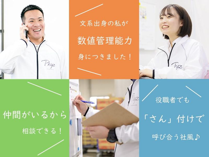 求めている人材 \ 第二新卒者のチャレンジ歓迎 / \ 初めての転職も応援します! / ■未経験歓迎 *資格や知識などは一切不問 ■学歴・職歴・年齢不問 *異業種・異職種からの転職も歓迎 *お人柄や熱意を重視した採用です < 当てはまる方はぜひ > ・物流未経験でもチャレンジしたい ・計画通りに仕事が進めることが好き ・数字の扱いや分析が得意 ・大手企業で安定したい ・チームワークを大切にできる ・若手の多い環境で働きたい -・-・-・-・-・-・-・-・-・-・-・-・-・ 社員インタビュー(Aさん・入社2年目) -・-・-・-・-・-・-・-・-・-・-・-・-・ 安定した会社で働きたくて、 同業から転職しました。 これまでは 自分の意見を伝える場が ありませんでしたが、 ファイズでは入社歴に関係なく アイデアを発信できる環境です。 それが改善、結果へつながるのは とても大きなやりがいですね。