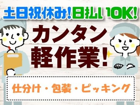 仕事内容 <オープニング!簡単モクモク作業> *未経験OK *かんたん作業 *高時給 美容商品の棚入れ・ピッキング・梱包などをお任せします。 軽い物ばかりで安心です。 異業種からの転職や久しぶりのお仕事という方も歓迎! 土日祝休みのお仕事なので、休日の予定も立てやすく、仕事とプライべートの両立もバッチリ! 他にも魅力的なお仕事多数! アナタのご希望に合わせてご紹介します! アクセスはこちら *自転車通勤OK 東京テレポート駅(りんかい線)、 テレコムセンター駅(ゆりかもめ)より無料送迎有り http://be-works-job.com/