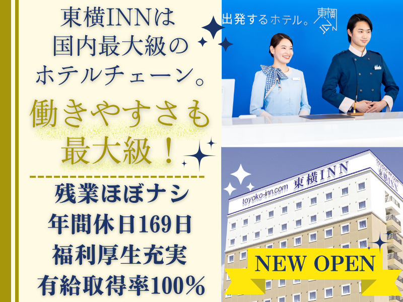 仕事内容 \\ 2026年3月2日 // 東横INN北上駅西口が新規OPEN♪ ◤趣味・推し活・旅行・学び… 正社員でも、全部諦めなくていい◢ 東横INN北上駅西口のフロントスタッフは、 1回勤務→2連休のルーティンが基本。 週2回程度の出勤で、 プライベート時間がしっかり確保できます。 だからこそ、 推しのライブ遠征、海外旅行、 語学や資格の勉強も、 無理なく続けられる。 しかも、全員オープニング同期。 新しい仲間と、ゼロから挑戦していけます。 「正社員だから、自由は諦めなきゃ」 そんな時代はもう終わり。 ここで、自分らしい働き方を見つけませんか? - ■仕事内容 -簡単なPCでの入力作業 -各お部屋のチェック、備品発注 -自販機の補充やロビーの簡単な清掃、 -予約の受付や変更の電話対応 など 語学力を活かして働きたい方も歓迎! もちろん苦手な方も大歓迎♪ 翻訳機があるので、語学スキルに 自信がなくても問題ありません。 ▶オープニングスタッフならではの魅力  ̄ ̄ ̄ ̄ ̄ ̄ ̄ ̄ ̄ ̄ ̄ ̄ ̄ ̄ ̄ ̄ ̄ ̄ ̄ ̄ ̄ ̄ ⭐キレイな新店舗で気持ちよく働ける! ⭐みんな一緒にスタートだから、同期がたくさん♪ ⭐一から丁寧に研修があるから未経験でも安心◎ 「やってみたい」という気持ちがあればOKです! オープニング限定募集だから、今がチャンス! あなたのご応募、心よりお待ちしています。