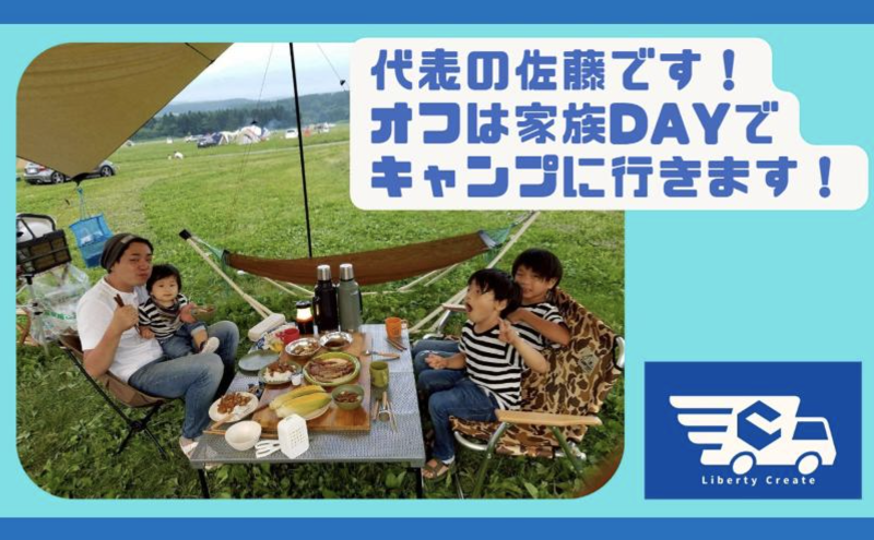 アピールポイント: ★=========★ 代表からのメッセージ ★=========★ はじめまして! Liberty Create代表の佐藤です!! 弊社求人をご覧いただきありがとうございます! 私は現在、3人の元気な息子たちと妻に囲まれて、 日々にぎやかで活気ある生活を送っています♪ 前職では12年間、製造の現場で働き、規律や品質管理を徹底的に学びました。 ですが、「このままでいいのか?」という気持ちが日に日に大きくなり、 一念発起して全くの未経験でこの業界に飛び込みました。 だからこそ、 これから新しい一歩を踏み出そうとしているあなたの気持ちに、 誰よりも寄り添える自信があります。 ★====================★ 「スキルより、つながり」を大切にする会社です ★====================★ 私たちが最も重視しているのは『人とのつながり』。 そしてその土台となる「心理的安全性」です。 仕事の中では、誰にだってミスやわからないことはあるもの。 そんなときに、遠慮なく「助けてほしい」と言える環境をつくることが、 何より大事だと考えています。 未経験だからこその不安。 経験がある方でも、新しい環境への緊張感。 そのすべてを受け止めて、誰もが安心して働ける場所を私たちは目指しています!! ★============★ 働く時は全力。遊ぶ時も全力。 ★============★ 休日には息子たちとキャンプへ。 自然の中で自由を楽しみながら過ごす時間が、何よりのリフレッシュです。 また、バイクに触れている時間も、仕事とは違う自分を取り戻せる大切な趣味です。 仕事も、オフの時間も、自分らしく。 そんな働き方ができる環境を一緒に作っていきましょう!! ★==★ 最後に ★==★ 新しい挑戦には、不安がつきもの。 でもその一歩を踏み出した先には、きっと今までにない可能性が広がっています。 あなたの「やってみたい」という気持ちを、私たちは全力で応援します。 仲間として、同じ目線で支え合いながら、一緒にこの仕事を楽しんでいきましょう。 お会いできる日を、心から楽しみにしています!!
