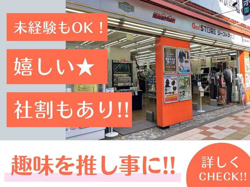 仕事内容 ✨・。――――✨・・✨――――。・✨ しっかりガッツリ働きたい方大歓迎‼ 未経験でも大丈夫★駅チカ&髪型自由♪ 【推しグッズ】に囲まれて働きませんか? ✨・。――――✨・・✨――――。・✨ ジーストア大阪で、販売業務メインに カンタンな軽作業などお任せします! 《 具体的には 》 ⏩お客様のご案内 ⏩商品の品出し(検品や陳列) ⏩レジ対応 ⏩売り場作り など ▶ポップカルチャーや コスプレ(イベント関連)など、 幅広いカルチャーに 触れられる面白いお仕事です! ◎接客未経験大歓迎!グッズ販売のお仕事! まずはカンタンなお仕事から 慣れていきましょう。 ◎分からない事があれば、すぐに近くの 先輩に相談して下さいね! ◎最新情報をいち早くget!社割あります★ ₊⁺₊⁺₊⁺₊⁺₊⁺₊⁺₊⁺₊⁺₊⁺₊⁺₊⁺₊⁺₊⁺₊⁺₊⁺₊⁺₊⁺₊⁺₊⁺ <アニメやマンガ好きにピッタリのお仕事> ⭐アニメグッズ、キャラクターグッズの アニメ販売を通じてサブカルチャーや オタク文化を存分に味わいながら 活躍できる職場です! ⭐髪型・髪色は自由だから、 いつものあなたでOK♪ ⭐ひとりで不安な方は 友達同士での応募もOKですよ! ⭐今こそあなたの趣味が 仕事に活かせるチャンスです! たくさんのキャラクターグッズに 囲まれながら楽しくお仕事しましょう☆彡 ⭐同じ趣味を持つ仲間と出会えて、 人脈も広がるかも?!( '▽')人('▽' )♪ ⭐明るく気遣いが出来る方が多いので、 困った時も相談に乗ってくれますよ♪ 「長く続けたい!」と思える環境で、 理想の働き方を叶えていきましょう! ₊⁺₊⁺₊⁺₊⁺₊⁺₊⁺₊⁺₊⁺₊⁺₊⁺₊⁺₊⁺₊⁺₊⁺₊⁺₊⁺₊⁺₊⁺₊⁺ 【現場の“生の声”をお届け】 Aさん(20代/男性) Q:ここを選んだきっかけは? 「好きなキャラクターがいる×未経験OK で仕事を探した時に 働きやすそうだったので選びました」 Q:この仕事の好きなところは? 「いち早く新商品の情報が入ってきたり、 社員割引があるから定価より 安く購入できるのが嬉しいです」