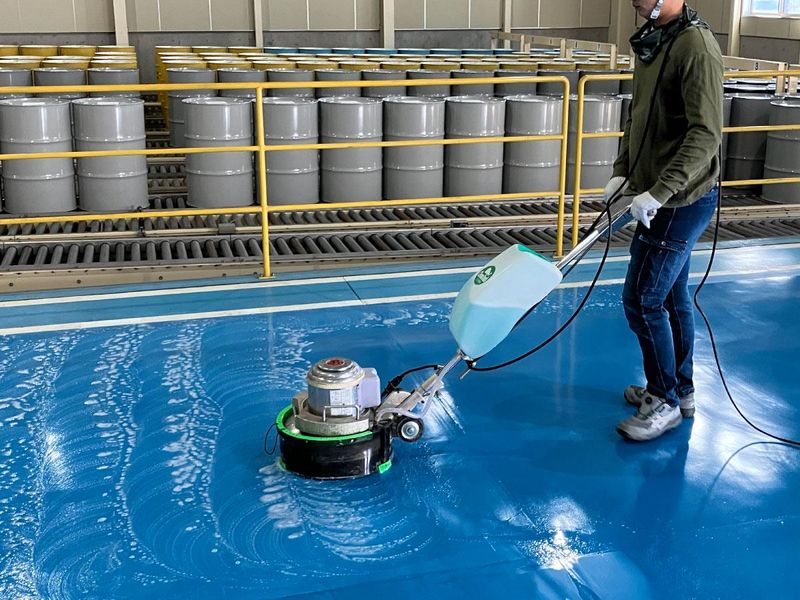 工場床のコーティング工事施工アルバイト