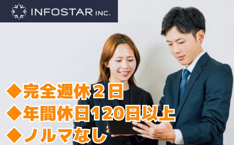 仕事内容 ★未経験OK&学歴・職歴いっさい不問 ★ノルマなしで安心◎件数に追われない ★平日休み(月・火)で混雑を避けられる ★年間休日120日&10時出社で朝ゆっくり ★転勤はありません! 「今の仕事、悪くはない。でも…」 「営業って、なんだかかっこいい!」 そんな純粋な気持ちからのスタートでOK。 今は工場や運送などの夜勤で 体を酷使している方や、日中の安定した 働き方に切り替えたい方… そんなあなたの、異業種からの転職も 応援&丁寧にサポートいたします✨ インフォスターは、 “ちゃんと評価される営業人生”を 始められる場所です。  ̄ ̄ ̄ ̄ ̄ ̄ ̄ ̄ ̄ ̄ ̄ ̄ ̄ ̄ ̄ ̄ ̄ ̄ ̄ 【仕事内容】 あなたにお願いするのは、 NTT光回線サービスのご案内営業。 誰もが知るNTTブランドだから話を聞いて もらいやすく提案しやすいのが特徴です◎ ⏩最初のうちは支店に集合し、先輩や 仲間と一緒に車で営業先へ向かいます。 帰りも迎えの車が来るので安心です。 ――――――――――――――――――― 【仕事の流れ】 ① 準備 訪問先リストを確認、 地図アプリでルートをチェックして出発! ② 訪問・ヒアリング 「ネットが遅い」「料金が高い」など、 お客様の困りごとを聞くのが最初の仕事。 話をしっかり聞くことが大切です。 ③ サービス案内 NTT光回線の内容をわかりやすく説明。 売り込むより、“相談にのる営業”スタイル。 専門知識は研修&資格 (ドットコムマスター)で習得可能! ④ 報告・共有 訪問結果をタブレットで入力して報告。 週1回のミーティングで、先輩と情報共有◎ ⭐訪問先や予定に合わせ出勤時間を調整可。 自由度の高い働き方ですが、 自己管理が大切です。 ――――――――――――――――――― 【サポート・研修体制】 入社後はまず1週間のWeb研修で、お客様 対応の流れや商品知識をしっかり学びます。 NTT商品を扱うための資格 (ドットコムマスター) を、入社後に 取得していただきます。 資格取得に向けたサポートも充実! 週に1度の大阪支店出社時は、 ・営業報告の共有 ・他スタッフとの情報交換 ・お客様対応ロールプレイ ・商品や新サービスの研修 などを行い、営業スキルを磨いていきます。 ――――――――――――――――――― 【この仕事のポイント】 ⭐転勤なし ⭐完全週休2日制(月曜・火曜) └平日休みなので、 観光地も役所も病院も空いていて快適! ⭐年間休日120日以上 ⭐10時出社だから朝の準備もゆったり ⭐ノルマなし&件数に追われないスタイル ⭐未経験スタート多数活躍中! 「話すことが好き」「人の役に立ちたい」 そんな気持ちがあれば、 経験も学歴も職歴も関係ありません。 ――――――――――――――――――― 【活躍中の先輩インタビュー】 Sさん/30歳/営業(アドバイザー) ― 入社のきっかけは? 大学卒業後、ビルメンテナンス会社で マンション管理の仕事をしていました。 インフォスターを知った時、 「個性を大事にする社風」と 「結果がきちんと評価される環境」に 惹かれて入社を決めました。 ― インフォスターの魅力は? やりたいことは、手を上げれば 挑戦させてもらえる会社です。 大手のような窮屈さがなく、 スケジュールも自分で組めるので 早く帰ったり、飲みに行ったりもできます☺ 待遇や報酬も満足していますが、 それ以上に“刺激がある”会社だと感じます。 ― 仕事の面白さは? お客様から「ありがとう」と 言ってもらえた瞬間が一番嬉しいです。 契約を取れた時も、社長や上司がちゃんと 「よくやった」と声をかけてくれる。 それがモチベーションになっています✨ ― どんな会社? 厳しさと楽しさのバランスがいい会社です。 仕事は真剣、でも普段は冗談も言い合える。 一体感のある職場だと思います。 ――――――――――――――――――― 営業と聞くと、 「ノルマがきつい」「数字に追われる」 そんなイメージがあるかもしれません。 でも当社の営業は、 お客様のお困りごとを解決する仕事。 「ネット回線が遅くて困ってたのよ」 「助かった、ありがとう」 そんな言葉を直接もらえる瞬間が、 何よりのやりがいです! 「今の仕事が嫌いなわけじゃない。 でも、このままでいいのか…」 そんな気持ちを、 一度でも抱いたことがあるなら。 インフォスターは、 “やり直し”ではなく “ステージアップ”の転職先です。 面接は履歴書不要。 まずは一度、気軽にお話してみませんか? ―――――――――――――――――――