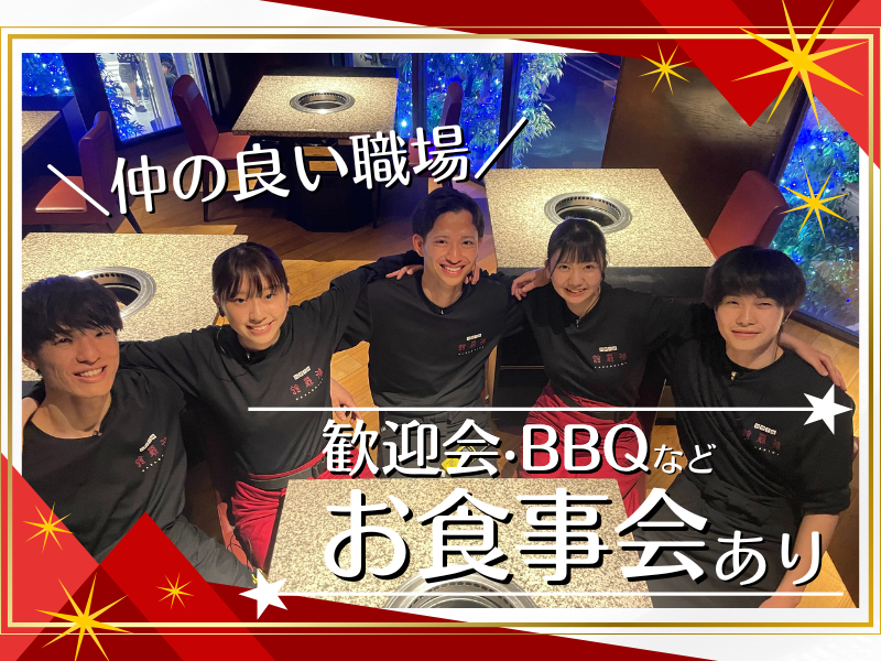 求めている人材 \ 未経験・アルバイトデビュー大歓迎! / ✨ 学生さん多数活躍中! ✨ 名古屋外国語大学 杉山学園大学 名古屋商科大学 愛知学院大学 など… いろんな大学の学生さんが働いています♪ \✨ こんな方にもオススメ! ✨/ ⏩ 焼肉が大好き! ⏩ 飲食店バイトを始めてみたい! ⏩ アルバイト先で、 趣味の合う友達を作りたい! ⏩ オシャレなお店で 少し大人な雰囲気を味わってみたい! ⏩ 高級焼肉店で将来役立つ マナーやスキルを身に付けたい!