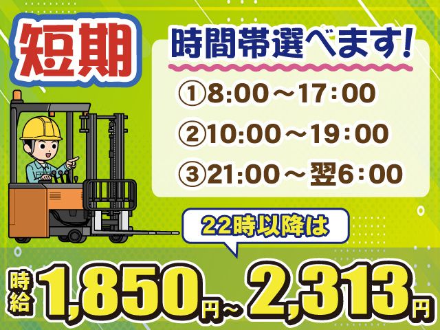 2~3ヶ月の短期!高時給!チルドセンター内でのピッキングや入出庫作業/時間帯を選べる/週払いOK