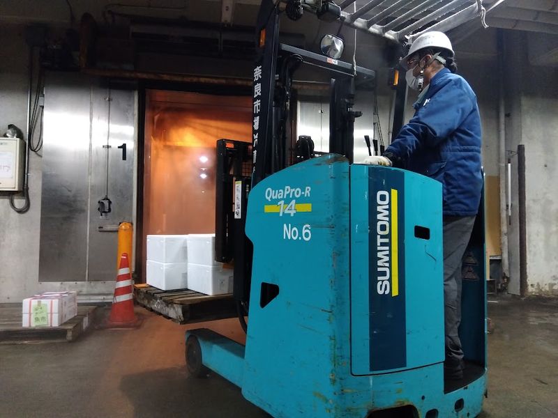 仕事内容: // 体の負担少なめ×安定収入✨ 明るいうちに帰れる!家族時間も大切にできる倉庫作業 \\ 記録業務や事務作業は、事務所スタッフが担当。 パソコン操作は一切ありません!! 倉庫作業に集中できる環境です。 ┏━━┓ 仕事内容 ┗━━┛ 免許は入社後でOK! 未経験から始められる市場倉庫のお仕事! 奈良県中央卸売市場内の倉庫にて、冷蔵・冷凍食材の 入庫・出庫・在庫管理をお任せします。 主な業務内容 * 冷蔵・冷凍食材の荷受け * フォークリフトによる入庫・出庫作業 * 在庫管理 . 入庫や積み込みはフォークリフトが中心◎ まれに手で商品を運ぶこともありますが、 食品がメインのため軽量で、体への負担は少なめです。 < 業務の流れ > 【1】入庫作業 全国各地から届く食材を受け取り、 冷凍トラックから冷蔵庫へ運び、指定の場所に収納します。 【2】出庫作業 出庫依頼に応じて、冷蔵庫から商品を取り出します。 指示書は紙で届くため、確認しながら進めればOK。 -----------------------------------------