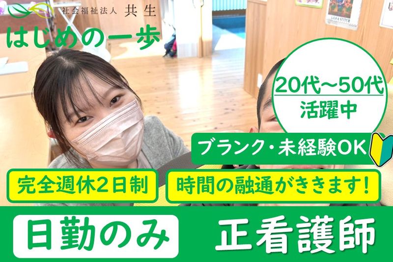 【雇用形態】 正社員 【契約期間】 雇用期間の定めあり(2ヶ月) ※試用期間中の労働条件は同条件 【その他】 正社員、パート・アルバイト問わず、病院やクリニックで正看護師・准看護師としてご勤務されていた方、あなたの転職を応援します! 障害児デイサービス看護師としてのご経験があればすぐにでもご活躍いただけますが、介護業界が初めての方も積極的にご応募ください。 障がい児、障がい者の生活介護や生活支援、水分補給や経管栄養等の看護業務、リハビリや入浴等の日常生活の介助をお願いいたします。 特別養護老人ホーム、サービス付き高齢者向け住宅、住宅型有料老人ホームやナーシングホームといった介護施設経験者にもおすすめです。 認知症グループホームやデイケアサービス、訪問看護ステーションなどで訪問看護・訪問介護に携わっておられた方もぜひご検討ください。 夜勤専従や交代制勤務から日勤専属へのシフトチェンジをお考えの方、子育てしながら働ける職場をお探しの方にもおすすめです。 20代、30代の若手ナースから、40代、50代の中高年、60歳以上のシニア世代の方まで、幅広い年齢層の看護師・准看護師が活躍しています。 ハローワークなどで「昇給・賞与あり」「ブランクOK」といった条件の看護職員・正社員のお仕事をお探しの方からのご連絡もお待ちしています。