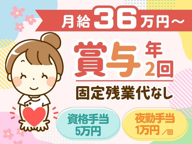 月給370,000円以上 給与詳細 ※基本給・一律手当の総額 基本給:月給 31万円 〜 固定残業代:なし 【一律手当】 全員に一律で支払われる通勤・皆勤・家族手当金額:あり 1ヶ月あたり6万円 〜 全員に一律で支払われるその他手当金額:なし ・基本給…26万円 ・資格手当…5万円 (准看護師は4万円) ・夜勤手当…5万円(5回分) ⭐賞与年2回 <手当について> ・夜勤手当:1万円/回 *月平均5回程度 (回数は変動の可能性あり) *医療行為あり