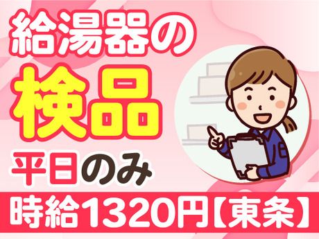 仕事内容 <難しい作業は一切ナシ♪給湯器の検品> *給湯器の外観チェック、動作確認 *不良品の仕分け、記録 *出荷前の最終チェック コツコツ・モクモク取り組めるシンプル作業☆ ★ご紹介できるお仕事は他にもあります! *短期で働きたい *平日だけがいい *扶養内で働きたい *Wワークで働きたい 等、条件は案件によって異なりますので お気軽にご相談くださいね◎ さまざまなお仕事先があるので まずはお問い合わせだけでもOK!