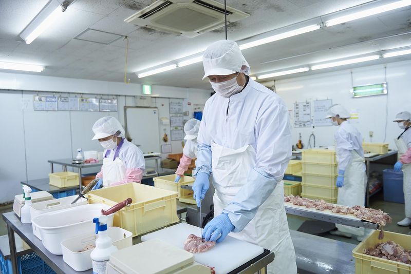 仕事内容 BGMの流れる明るく清潔な工場内で、からあげ用のお肉の加工や味付けを行います。 老若男女幅広く活躍中です。