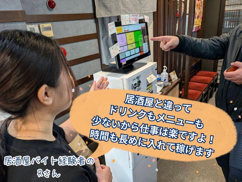 職場環境 「他の飲食店や居酒屋で働くよりも、業務量が少なくて楽だと感じた!」というスタッフさんも多数。 お酒のメニューも少ない&頼まれる方もほとんどいないので、「接客やお客様との会話は好きだけど、メニュー覚えるの大変」という人にはおススメです!