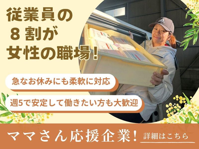 求めている人材 ✅要普通運転免許(AT限定可) ✅未経験の方、ブランクがある方大歓迎!! ┗丁寧な研修を受けられるので、安心です♪ \こんな方が活躍中です!/ ✋扶養内で勤務したいパートさん ✋子育て中の方(家事・育児と両立!) ✋ライフステージに合う働き方に変えたい ✋子どもが大きくなったら正社員復帰したい .:。+.:。.:。+.:。+.:。.:。+.:。+.:。:。+.:。+ 【デリバリー】【配送ドライバー】 【配達】【カフェ】や【ファミレス】 【飲食店】【コンビニ】や 【ドラックストア】【販売】など 【接客業】【エステ業界】出身のほか、 【事務】【一般事務】【営業事務】 【医療事務】【総務】【データ入力】 【バックオフィス業務】【書類作成】 【コールセンター】【問い合わせ対応】 【在宅勤務】【リモートワーク】 などからの転職スタッフも 多数在籍しています! .:。+.:。.:。+.:。+.:。.:。+.:。+.:。:。+.:。+