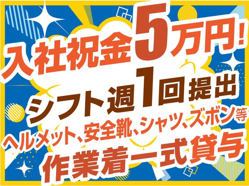 仕事内容 新築住宅の建築現場で、 ・資材の開封軽作業 ・『組み立てる前』のキッチンや家具、 クローゼットなどの板状資材を搬入! ■組み立てなどは専門業者が行うので、 指定された階数に運ぶだけ◎ ■先輩のサポートもありながら、 2〜3名のチーム制で未経験でも安心◎ 重たい鉄骨などは扱いません♪ ■現場には直行直帰ok! 一都三県(東京、埼玉、神奈川、千葉)の 各地や松戸・柏・墨田・北千住・秋葉原 等にも現場があり通いやすい点もポイント! <当社で働く魅力ポイント> ・日払い・週払いOK!早く終わっても日給保証 ・入社祝い金5万円支給 ・1週間ごとにメールやLINEで申請可能 ・髪色・ヒゲ・ピアス自由♪ ・制服。道具は一式支給! →ヘルメット・安全靴・作業服など全部支給 ―――――――――――――――――――― <履歴書不要!即日面接&勤務も可能> ▼ ①or②の方法ですぐに合否確認 ▼ ①『電話面接』 *簡単な質問に答えるだけ! *『03-6820-9466』に今すぐ電話 (平日9~18時/土曜9~15時まで) *名前や年齢など簡易的な質問に答えるだけ♪ 選考通過者にはその場で最終面談(雇用登録)のご案内を行います★ ②『ネット応募』 *応募後のメールに返信するだけ! *ネット応募後に届くメールから 希望面接日などの質問に返信するだけ♪ 選考通過者には最終面談(雇用登録)のご案内を行います★