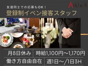 インフォメーション \学生さん活躍中/週1日~OK!ホールスタッフ大募集♪ 接客マナーや立ち振る舞いを学べるこの仕事は、将来の就職活動や社会人としてのスキルアップにもぴったり!空いた時間を有効活用して、楽しみながら実務経験を積みませんか?未来への準備もここで一緒に始めましょう! 「お客様との暖かいおつきあいを大切にします」 私たちスタッフが、いつも心にとめている経営の基本方針です。 また、サービス品質の目標は、常に「お客様の期待以上のご満足」を提供し、感動の場と新しい文化を創造すること。 冠婚葬祭は、かけがえのない人生の中で大切な節目に訪れる儀式。その一瞬一瞬で、感動をお届けしたいと願っています。 アピールポイント アークベルグループは新潟県内、山形県の庄内地方において、婚礼施設11施設、貸衣裳店15施設、葬儀式場117施設、関連会社5社を有する会社です。 スタッフが感動交響楽団(オーケストラ)となり、お客様に期待以上のご満足を提供いたします。 自分力バロメータ コミュニケーション力 実行力 向上心