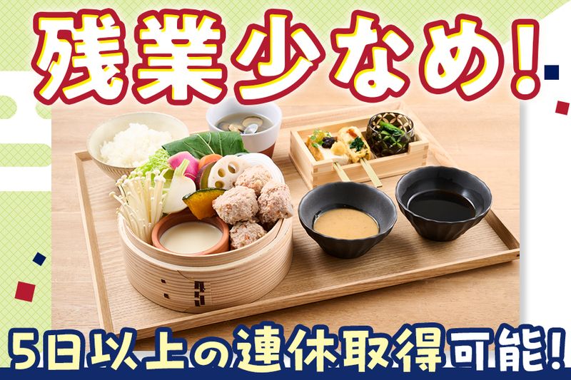 求める人材: <学歴不問・未経験OK> 接客が初めての方も大歓迎です。 「料理が好き」「カフェが好き」 そんな気持ちがあれば歓迎します。 \こんな方にピッタリです/ * 人と話すのが好き * 日本文化・日本料理が好き * 落ち着いた接客がしたい * 新しいお店づくりに関わりたい <以下の方を歓迎します!> * 飲食店での勤務経験がある方 * 第二新卒・フリーターさん * 主婦(夫)さん * 社会人デビューの方