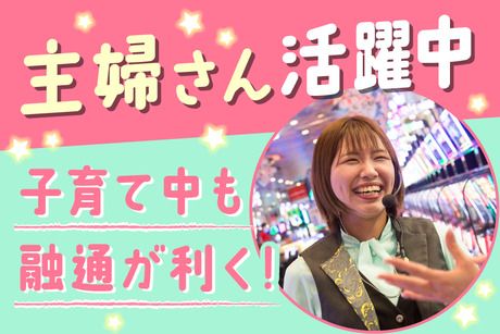 仕事内容 << ”働きやすさ”と”高収入”、どちらも叶う >> 勤務は週3日・1日6h~OK! 前月に調整できる「希望シフト申告制」! 家庭や学校の都合も考慮します♪ 「夕飯づくりの時間まで」 「育児と両立できるようシフトが組みたい」 「学校が休みの土日中心に入りたい」 など、 ライフスタイルを考慮したシフトが叶います! また、研修初日から時給1200円~スタート! 更に22時以降は時給1500円~と時給UP! 働きやすさと高収入どちらも叶います◎ << 未経験スタートの方も大歓迎! >> 【 主な業務内容 】 ◆お客様のお出迎え ◆お見送りのご挨拶/ご案内 ◆計数機対応 ◆遊技台のトラブル対応、清掃、除菌 ◆お呼び出しアナウンス ◆賞品カウンターでの交換対応 など パチンコ台は全台パーソナルの為 ””” 玉箱交換もありません ””” 腰に負担がかからないのも嬉しいポイント♪ << 充実の研修有!同年代の先輩も多数 >> 接客が初めての方や初バイトの方も大歓迎! パチンコの知識ゼロ・未経験スタートでも、 安心して始められる教育体制が整っています。 *基本の接客対応マニュアルあり! *先輩スタッフがトレーナーとして しっかり丁寧にサポートします! *全くの経験ゼロから始めた 主婦さんや学生さんも活躍中です♪