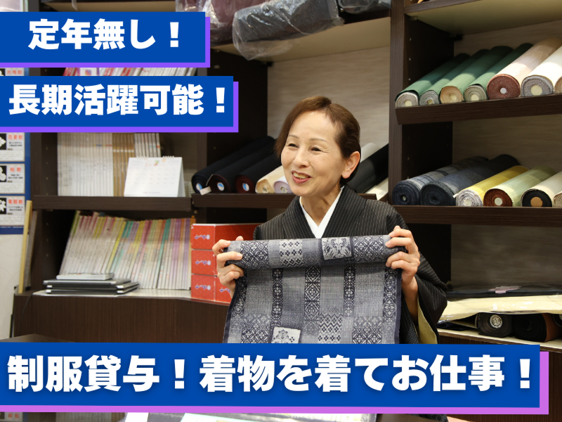 アピールポイント: ◆着物の魅力を伝えるお仕事 「着物をもっと身近に、もっと楽しく!」 がテーマ。お客様の雰囲気に合った コーディネートや、着こなしの提案をします ◆安心&安定の職場 ・優良企業ガイド8年連続掲載 ・「あいち女性輝きカンパニー」認定 ・社会保険・有給休暇完備 ・交通費全額支給 ・定年なし!30代・40代・50代・60代活躍中 ・勤続10年ごとに旅行券10万円分プレゼント 長期貢献をしっかりと評価し、感謝の気持ちを形にしています ◆着物を着てお仕事! ・着物制服貸与(無料) ・未経験でも着付けが自然に身につく ・他装(人に着付けができる方)は手当あり◎ ◆働きやすさを重視! ・今は“少しだけ”でも、ゆくゆくは“しっかり” お子様の成長に合わせてシフト調整可能です。 ・スタッフ同士相談しやすい環境 ・未経験・ブランクOK!