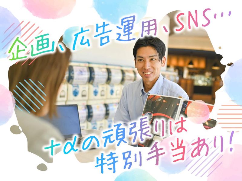 仕事内容 ―――――――――――――― 「日本の中古車選びを、 もっと自由に面白くしたい」 ―――――――――――――― そんな想いから私たちは、 誰もが気軽に立ち寄れる 中古車屋さんを作りました。 お店があるのは、お洒落なカフェの隣です。 ランチやコーヒーを楽しむついでに ちょっと車を見て帰れるという、 独自の集客方法を確立しました。 さらに系列店はホームセンターや ショッピングモールの屋上に出店。 親しみやすく開放的な雰囲気の展示場では 屋台や他テナント様とのコラボ企画といった、 様々なイベントを開催しています。 「まるで中古車屋じゃないみたい」 そんな私たちのスタイルが、 関西で広まりつつあるんです。 でも、事業としてはまだまだこれから。 もっとお客様目線で、 もっと嬉しいと思えるような、 新しいアイデアが必要です。 ”型破り”な車屋ですから、 粗削りでも、突拍子がなくても大丈夫。 フレッシュなあなたの視点こそ、 ブレイクスルーになるかもしれません。 私たちのお店を、 より多くのお客様から 愛される場所にするために、 一緒に挑戦していきましょう。 ★☆新店オープンにつき増員募集☆★ 昨年11月にオープンした阪神甲子園駅前に続き、 今年8月は天王寺駅前に新店オープン予定! 事業拡大のため一挙増員が決定しました。 =============== 【具体的な業務内容は…】 お客様への中古車のご案内と、 店舗や事業を発展させるための さまざまな企画をお願いします。 ✅中古車のご案内(接客販売)  ̄ ̄ ̄ ̄ ̄ ̄ ̄ ̄ ̄ ̄ ̄ ̄ ̄ ̄ 平日は1日あたり1~2組、 土日祝は2~4組ほどのお客様に対応します。 「この車が欲しい!」と決めてくる方もいれば、 「偶然見たあの車が気になって…」という方も。 併設のカフェに来たついでに、 立ち寄ってくださるお客様も多いです。 こちらから一方的に提案するのではなく、 お客様と一緒に考えたり疑問を解消したりして、 お客様のクルマ選びをサポートしてください。 成約後は契約書類や保険・ローンなどについてお客様にご説明。 専門的な部分は事務スタッフもサポートします。 ✅イベントの企画運営  ̄ ̄ ̄ ̄ ̄ ̄ ̄ ̄ ̄ ̄ ̄ ̄ ̄ ̄ ●1円から始める手競りオークション ●お車の無料査定で施設内テナント様とコラボした商品のプレゼント ●コイン落とし といった集客イベントを開催! 内容は自分たちでアイデアを出し合って決めており、 当日の対応も自分たちでやっています。 ✅企画会議への参加  ̄ ̄ ̄ ̄ ̄ ̄ ̄ ̄ ̄ ̄ ̄ ̄ ̄ ̄ 社内にはいつかのワークチームがあり、 自分の興味のあるものに参加できます。 例えば、 ●イベント企画 ●店内レイアウト ●WEB広告の効果改善 ●SNSを使った広報活動 など。 決めたことは全店舗に共有され、 事業全体で取り組んでいきます。 最近だと 「キッズスペースを広げよう」 「インフルエンサーを招待しよう」 などの提案が、 採用され実現されています。 - ■研修制度充実!未経験から活躍できます - 「お客様に喜んでもらいたい」 という想いさえあれば、 カーライフプランナーとしての資質は十分! 営業未経験でも、クルマに詳しくなくても、 活躍できるようになる仕組みをご用意しています。 まずは先輩の商談を見学し、 販売の流れを覚えていきましょう。 感覚を掴んだら、在庫車を中心にご案内をスタート。 先輩や上司だけでなく、 経験豊富な社内SVもあなたをバックアップします! 上手く行かない時はすぐに相談してください。 来店されるお客様が多いため、 商談のチャンスが豊富なのも心強いポイントです。 最初の1ヶ月はしっかり学ぶ期間になっているので、 お客様を担当するようになっても 慌てず落ち着いて仕事ができます。 企画に関しても先輩と一緒に進められるので、 未経験でも全く問題はありません。 みんなで意見を出し合って、 よいものを作り上げようというスタンスなので、 学び発信する姿勢さえあれば大丈夫です。 - ■先輩からのメッセージ - この会社を知った時は、 「カフェ併設の車屋さんなんてあるんだ!」 と驚きました。 それだけ斬新な発想で事業をしている会社なら、 自分も色々挑戦できて面白そうだと思い、 入社を決めました。 現在はプランナーとして中古車をご案内しながら、 WEB広告の効果改善に取り組んでいます。 ネットや広告の知識はありませんでしたが、 ワークチームは勉強会みたいな感じで、 広告の反響分析などを 意見を言い合いながらやっています。 こういう業種だと 「同僚=ライバル」なイメージがありますが、 うちの会社はそれ以上に 一緒に成長していく仲間という感覚が強いです。 会議では遠慮することなく発言できますし、 やろうと決まったことは協力して挑戦できます。 「これやってみたい!」 という発想にワクワクする方なら、 うちの会社はすごく楽しいと思います。 ―2年目・35歳