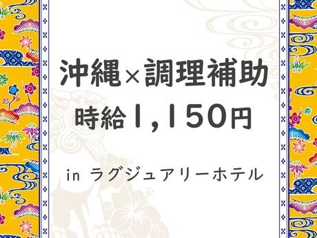 仕事内容 お仕事は・・・ オールデイダイニングでの調理補助スタッフとしてご勤務いただきます。 ◆具体的には◆ 調理補助業務全般 ・野菜や食材の洗浄、皮むき、切り分け、下ごしらえ ・魚、肉、野菜などの食材を必要なサイズや形にカット ・調理器具の洗浄 ・キッチン全般の衛生管理 など 稼ぎたい方にぴったり! 那覇市内のホテルです。常に高稼働を誇るホテルのため、 残業をお願いすることもしばしば。 稼ぎたい方にはピッタリの現場です! 朝4時出勤の早朝シフトできる方を探しています! (22:00~翌5:00の時間帯は深夜割増もつきます!) ※残業をお願いする場合があります。 月平均20~30時間前後 最繁忙シーズンはそれ以上になることもあります。 職場環境 平均年齢40代のスタッフを中心に、 ベテラン社員から若手社員までともに切磋琢磨しあえる関係性を築いています。 「調理場で働きたい」「調理技術を伸ばしたい」など、様々なスタッフがおりますのでお気軽にご応募ください♪