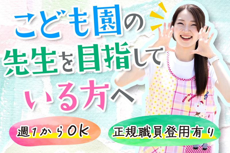 【アピールポイント】 ✅幼稚園教諭や保育士を目指す学生さん、必見! ✅26年卒・27年卒の方も注目! ■有給インターンシップ ■正社員登用あり ■週1からOK!学生生活優先でOK! ✅まずは職場見学のみでOK!入社の前にいろいろ知れるから安心✨