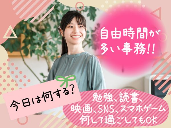 空き時間は自由時間髪色・服装・ネイル自由! 1日2~3時間、週2日~OK!コツコツ事務のお仕事!