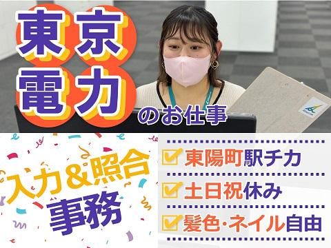 仕事内容 ✦・┈┈┈┈✧・┈┈┈・✧┈┈┈┈・✦ 採用率UP中✊ 東京電力の事務センターでの 電話対応ナシのデータ入力&チェック業務 長期or3月末までの短期→選べます! ✦・┈┈┈┈✧・┈┈┈・✧┈┈┈┈・✦ 【仕事内容】 お客様から届いたお申込書の内容を ✅専用システムに入力 ✅照合・確認 のお仕事です♪ ┏━━━━━━━━┓ ⭐オススメPOINT⭐ ┗━━━━━━━━┛ *電話対応は一切ありません◎ *コツコツ黙々…集中して進めるお仕事! 「電話対応キライ!」 「オフィスワーク経験がなくて不安…」 そんな方でも安心して始めていただけます♪ *安心&安定感抜群の東京電力のお仕事! パソコンでの文字入力・基本操作が出来れば、 未経験でもブランクがあっても大丈夫! 入社後、2日間の研修があり、 研修終了後もOJT形式でしっかりフォローします! 先輩スタッフがしっかりサポートして いくので、何かわからないことが あればなんでも聞いてください! ✅服装・髪型自由♪ ネイル・ピアス・ヒゲもぜ~~んぶOK! オシャレを楽しみながら働けます!