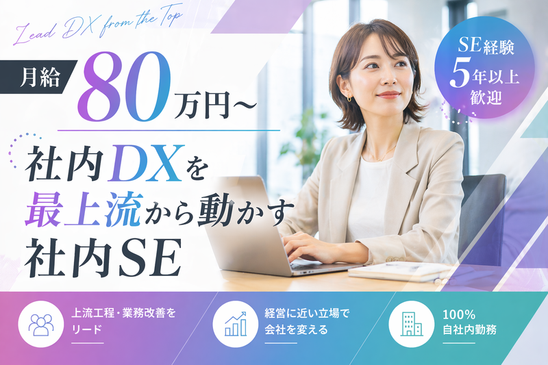 求めている人材 【必須条件】 ・SEとしての実務経験を5年以上お持ちの方 ・要件整理、業務改善、システム導入・改修のいずれかに主体的に関わった経験をお持ちの方 ・社内外の関係者と調整しながら、プロジェクトを前に進められる方 【歓迎条件】 ・社内SE経験 ・要件定義、業務改善、ベンダーコントロール経験 ・Python、PHP、JavaScript、TypeScriptいずれかの実務経験 ・Kintone、WordPress等の運用・改善経験 【こんな方に向いています】 ・上流工程から関わりたい ・裁量ある環境で改善を進めたい ・事業に近い立場でITの力を発揮したい
