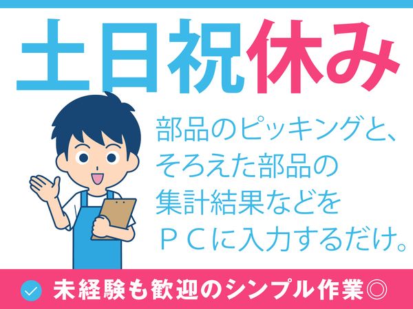 【高時給1200円!日勤の軽作業】部品のピッキングと、簡単なPC入力をお任せ。残業少なめで働きやすい職場です!