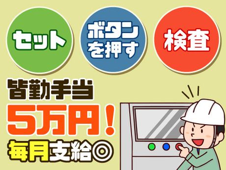 男性が8~9割の職場★皆勤手当有!毎月5万円GETのチャンス★ボタンを押す→検品の簡単作業◎