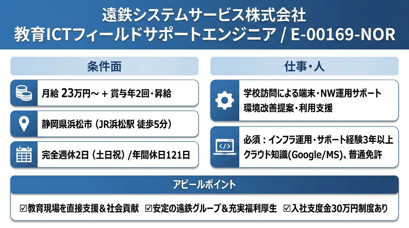アピールポイント: ✨学校現場で端末・ネットワークを直接支援 ✨教育ICT環境の運用経験を積める ✨改善提案に関われる ✨安定した勤務環境